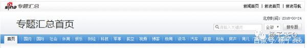 如果要问导航应该分布在哪些页面上的话,从用户的角度来审视这个问题就很不难,哪些页面在访问者访问后,可能会产生进一步了解信息的冲动,那么这些页面上就应该放置导航。简单来说,除了完全没有意义的中间过渡页面外,网站的任何页面都应该存在某种方式的导航。如下图新浪首页顶部导航: