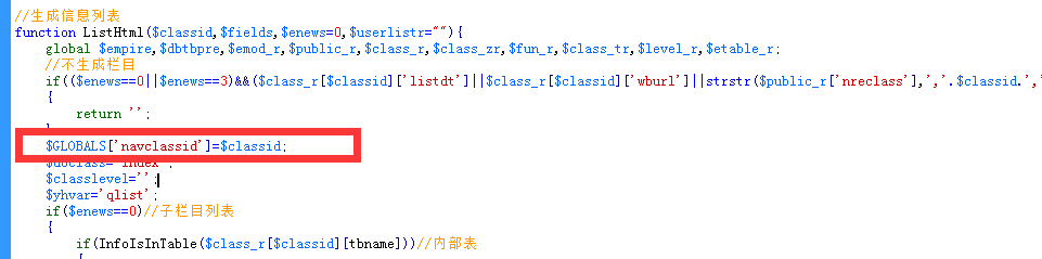 $GLOBALS[‘navclassid’]=$enews==4?$userlistr[‘listid’]:$classid;