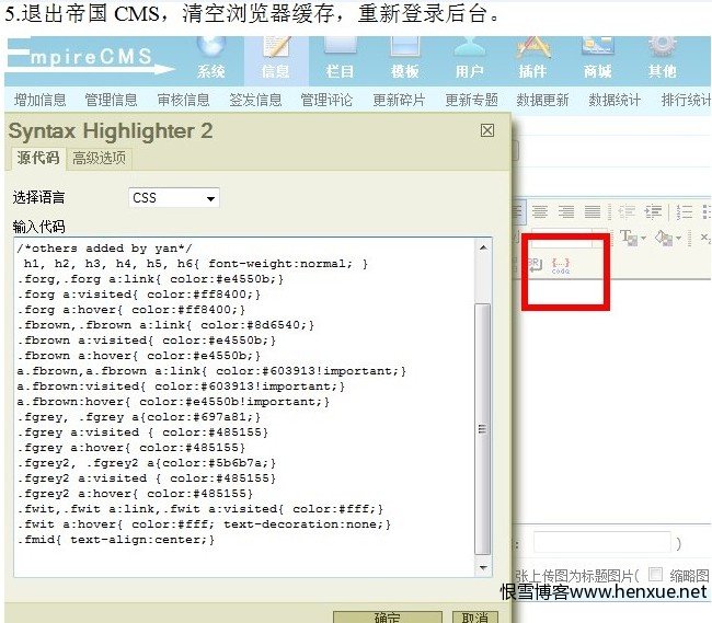 帝国编辑器(FCK)默认是没有插入代码这一功能的,所以一般在添加代码的时候习惯用引用这个功能,可是,这也太不专业了吧?那咋整?就给FCK加一个插件呗。下面就是很有名的SyntaxHighlighter了。