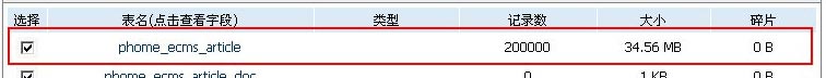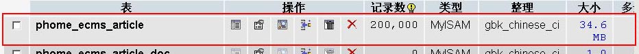 经测试,20万数据(每篇文章的内容大约有2050个字节)在不采用内容存文本功能的情况下,数据库占用近1GB;而采用了内容存文本功能后,数据库仅占34.6MB,如下图: