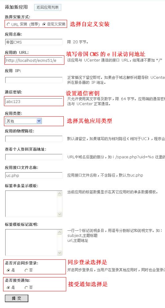 第 2 步:在Ucenter后台增加帝国CMS应用