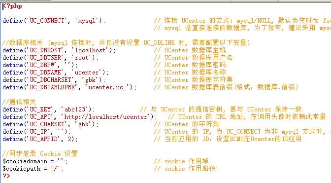 第 3 步:配置Ucenter整合接口的配置参数文件e/config.inc.php