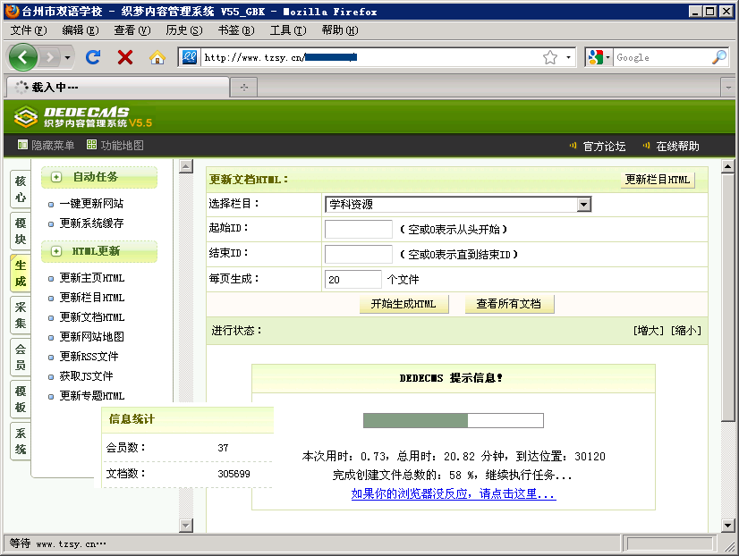 下面我提供一组数据,大家对比一下你网站的数据量和生成速度,能不能有提升的空间。可能有部分站长优化得比我好得多,我只在这里献丑了!