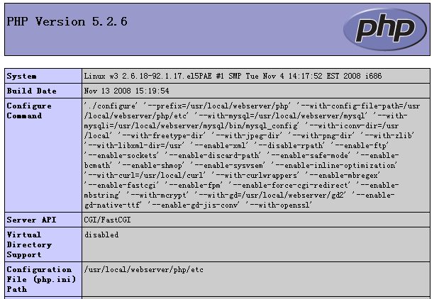一、安装 CentOS 5.2,装最基本的组织,MySQL,PHP,APACHE都不要安装,以后自己下载源码编译安装。