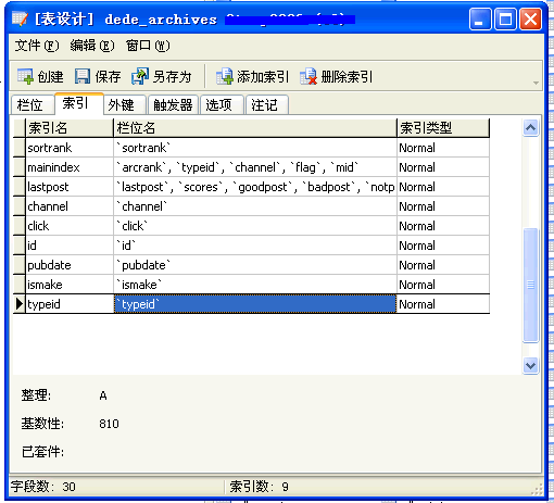 四、优化DEDECMS数据表索引。官方的默认索引不是最优化的,可能DEDE官方有所保留。