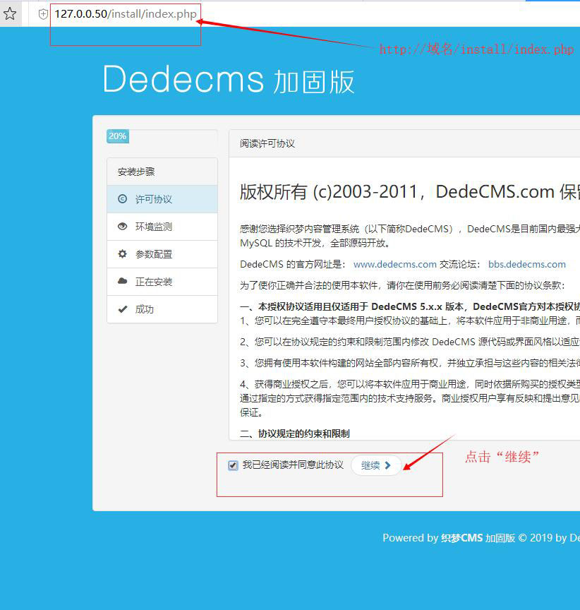 1.运行http://域名/install/index.php(比如你的域名是:http://www.jb51.net/,就输入https://www.jb51.net/install/index.php)