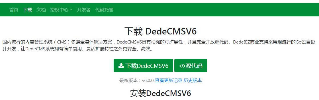 通过DedeCMSV6系统下载页面可以获取到最新的程序安装包。