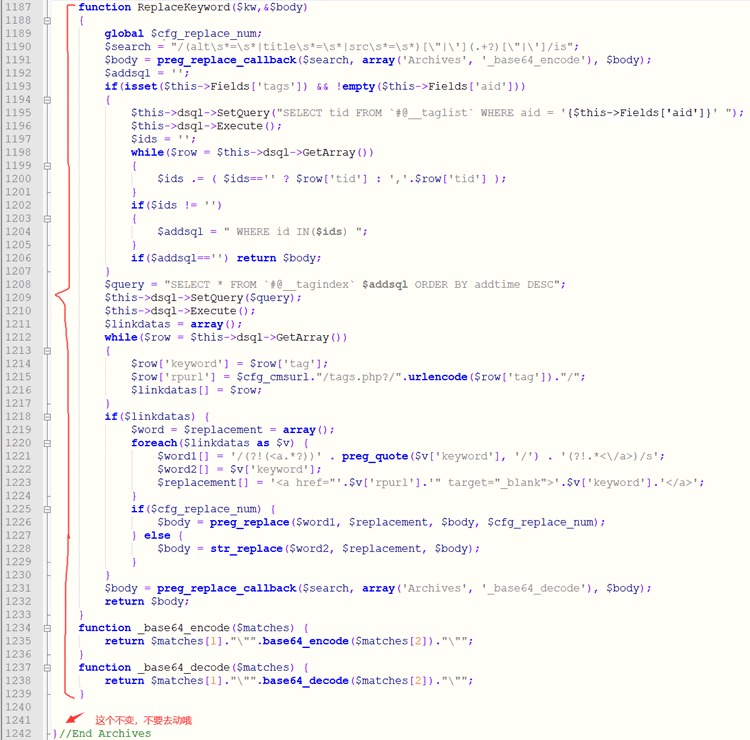 3、打开 /include/arc.archives.class.php 找到,大概在1187行至1241行,整个函数