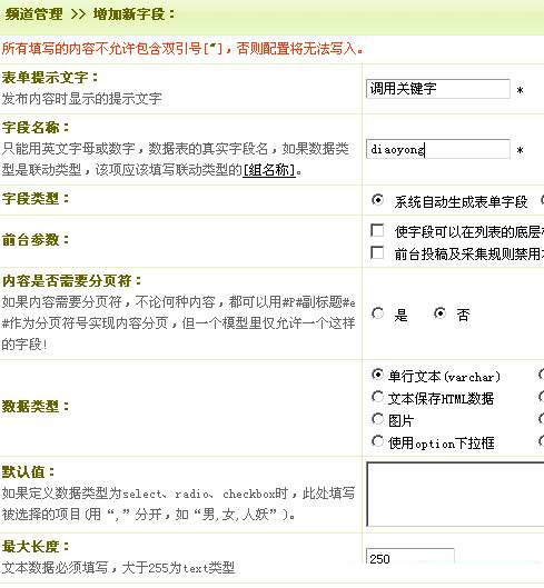 关键字项就可以输入我们要做锚文本的关键词了,而调用关键字就可以填写此篇文章的关键词,即keywords中调用的信息。