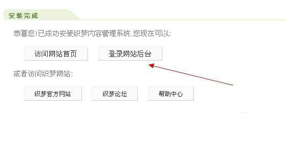 3.安装完成,点击进入后台。(如出现错误页面可 直接 域名/dede进入后台}