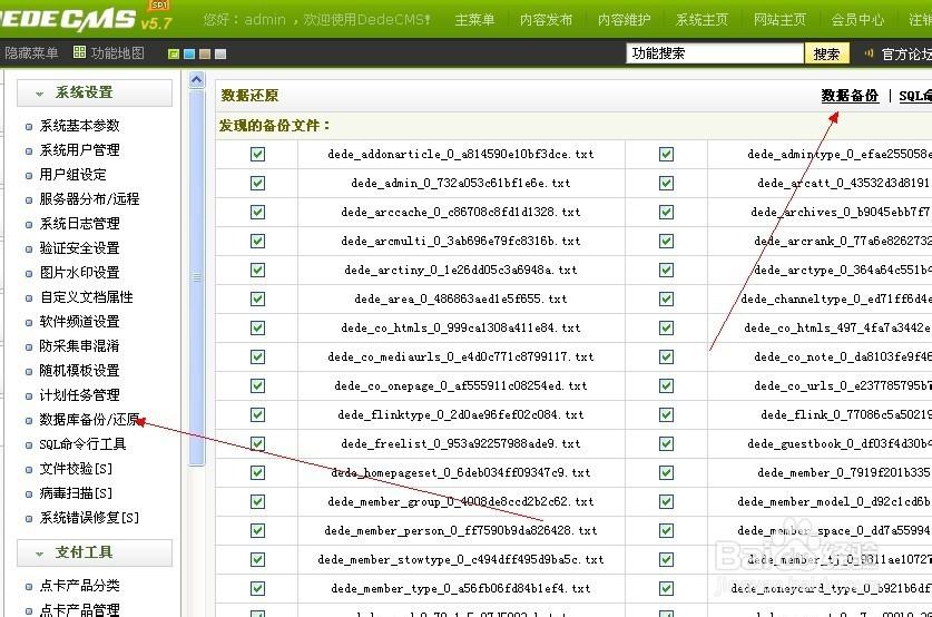 4.进入后台,点击“系统”-“数据库备份/还原”,执行“数据还原”即可。