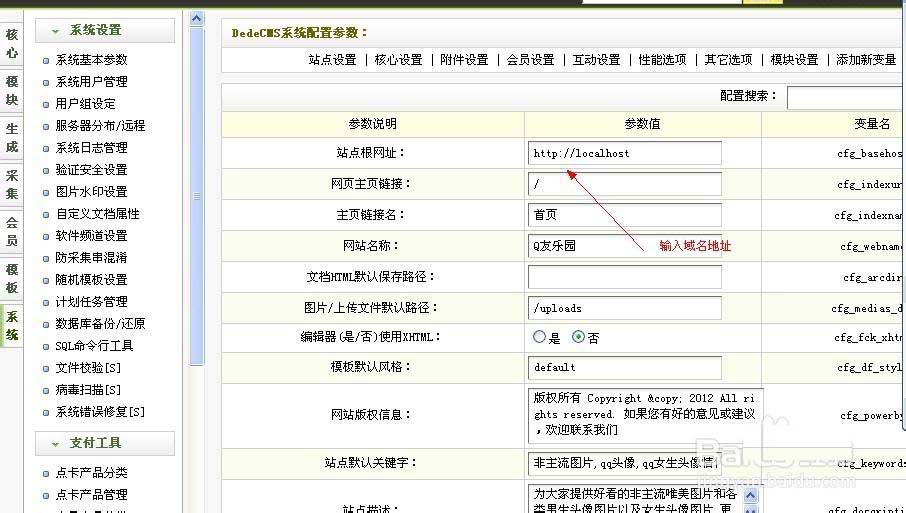 4.进 系统—系统基本参数—填好你的根网址 。。记住后面别加 / 和其他的参数。
