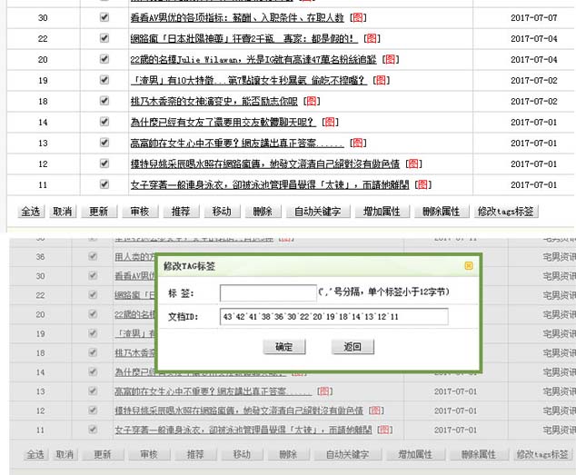 之前发布了不少文章,后来发现之前的这些文章当时发布时都没有添加tag标签,然而现在需要都添加上tag标签,然而这个在默认的织梦后台是没办法批量实现的,只能一篇篇文章去修改。