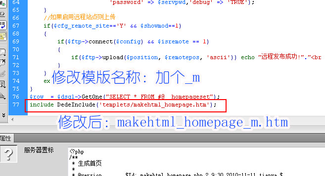 打开新增的文件:makehtml_homepage_m.php  找到 77 行