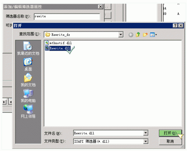上图界面中点击“浏览”,选择下载解压后的 IIS Rewrite 组件目录下的 Rewrite.dll 文件