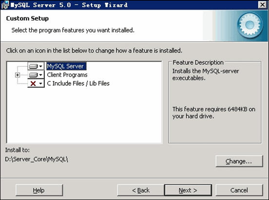 点击”Change”更改 MySQL 安装目录,如下图所示: