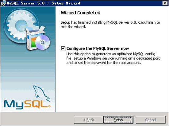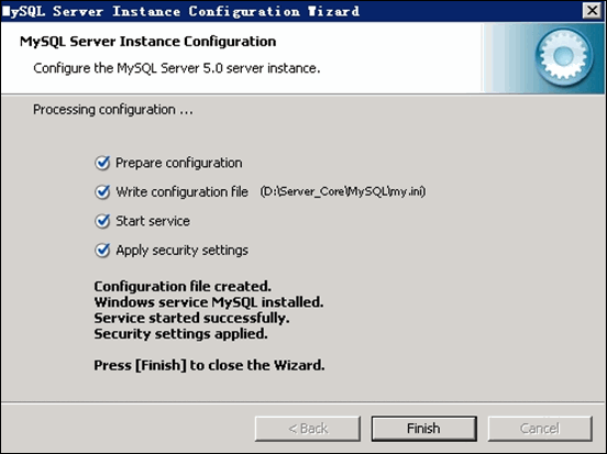 待文件复制安装完毕后,进行 MySQL 设置界面,单击 Finish 。如下图所示: