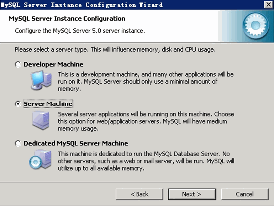 选择 MySQL 运行模式:Server Machine 如下图所示: