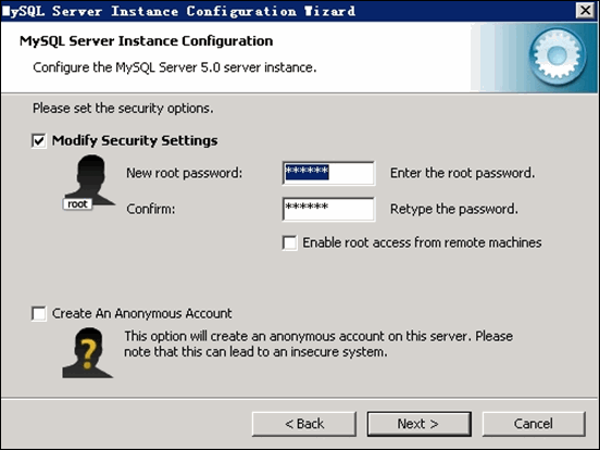 修改设定 root 用户密码,注意:不要启动远程连接模式! 如下图所示: