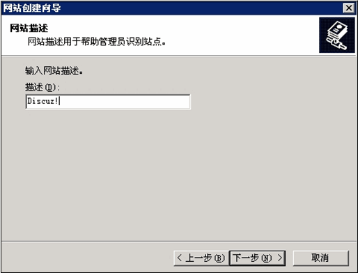 (2) 输入网站名称,改名称仅为 IIS 中的标识,可任意输入。如下图所示: