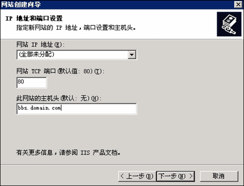 (3) 网站IP地址不用填写,端口如没有特殊要求则保持 80 即可,最后正确输入网站域名。如下图所示: