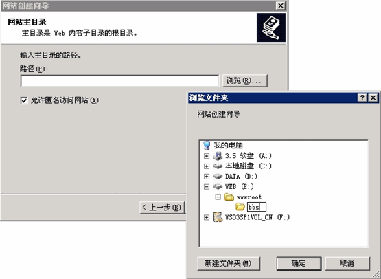 (4) 在网站分区中建立 wwwroot 以及下级站点文件夹 bbs。如下图所示: