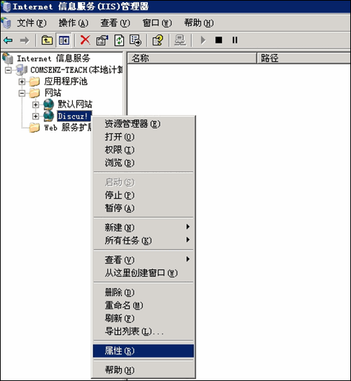 (1) 打开刚刚建立的网站属性,如下图所示: