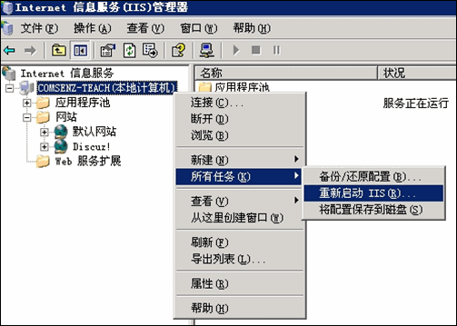(6) 重启 IIS 服务,如下图所示: