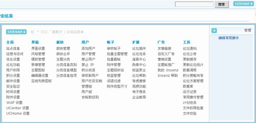 Discuz!7.0.0 的这两个功能非常实用,尤其是对于 Discuz!7.0.0 后台不是很熟悉的站长,所以建议站长多用此功能,这样很够快速的帮你找到你想做的设置的位置。