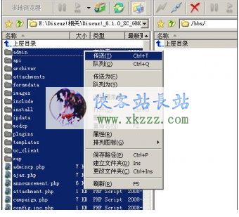 将其中 upload 目录下的所有文件使用 FTP 软件上传到空间,如下图所示: