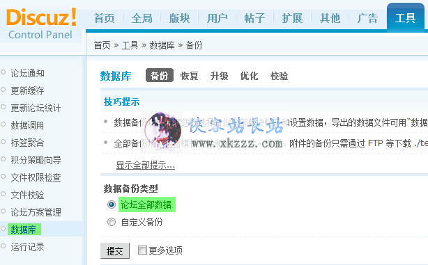 虚拟主机用户推荐直接在论坛后台进行备份,用管理员登录论坛后台 => 工具 => 数据库 => 备份:推荐备份“论坛全部数据”