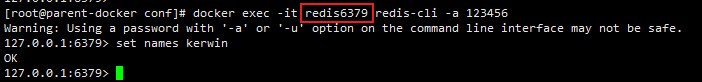 redis6379:容器名称、 redis-cli:redis自带客户端命令、 -a 123456:指定redis密码登录