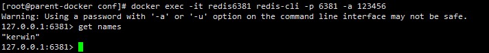 redis6381:容器名称、 redis-cli:redis自带客户端命令、-p 6381:指定redis端口、 -a 123456:指定redis密码登录